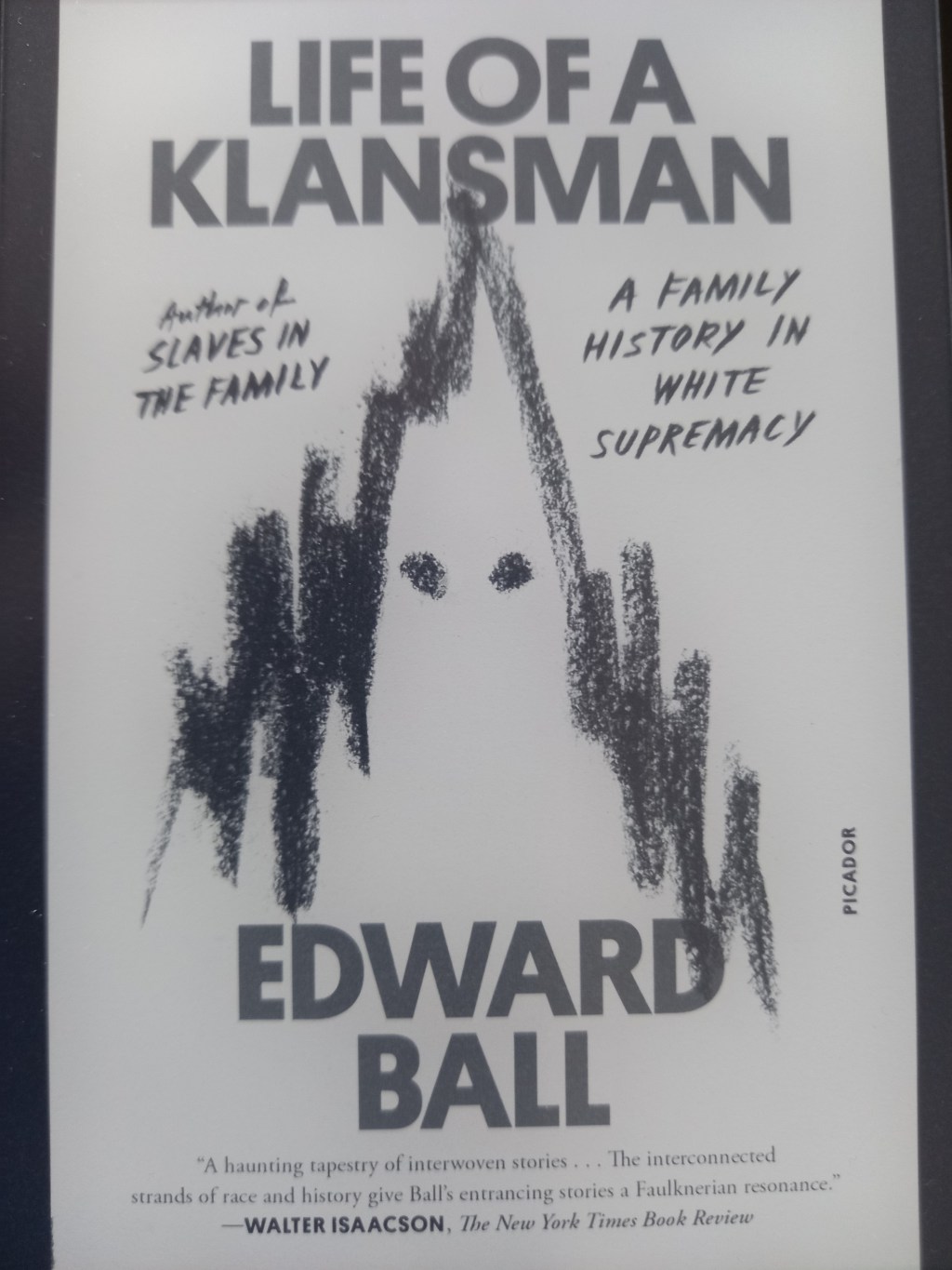 Edward Ball: Life of a Klansman: A Family History in White Supremacy. Farrar, Straus and Giroux, August 4, 2020, 416 pp, Kindle version, $13.64